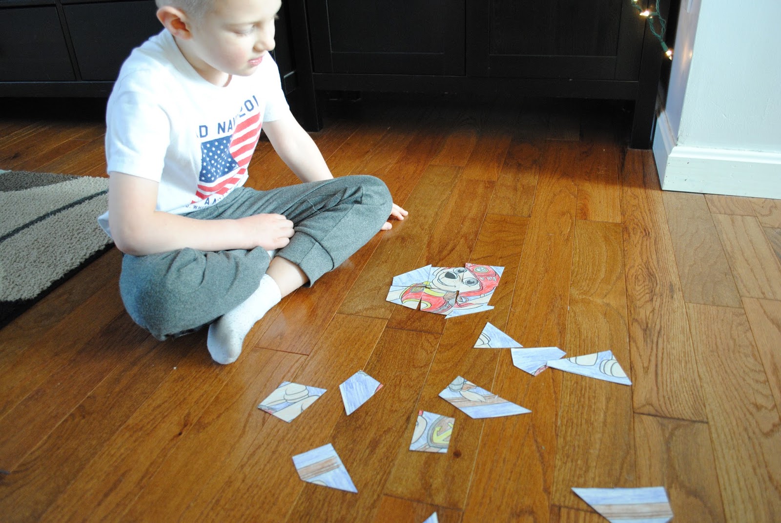 | Making our own jigsaw puzzle; cereal boxes and coloring pages to reuse |